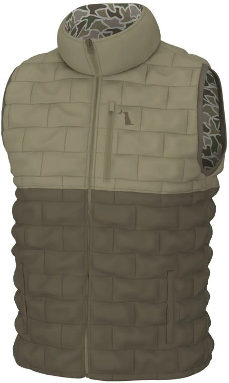 Two birds, one stone. Our duck down vests are the epitome of versatile outerwear! This piece offers two distinctive looks in one, making it a valuable addition to any wardrobe. It features a reversible design with one side offering a classic, brick quilted two-toned look with the reversed side showcasing some of our infamous camo prints. As if it couldn't get any better, both sides feature a zipper chest pocket and our signature dog and moon chest embroidery! Get ready to be obsessed!